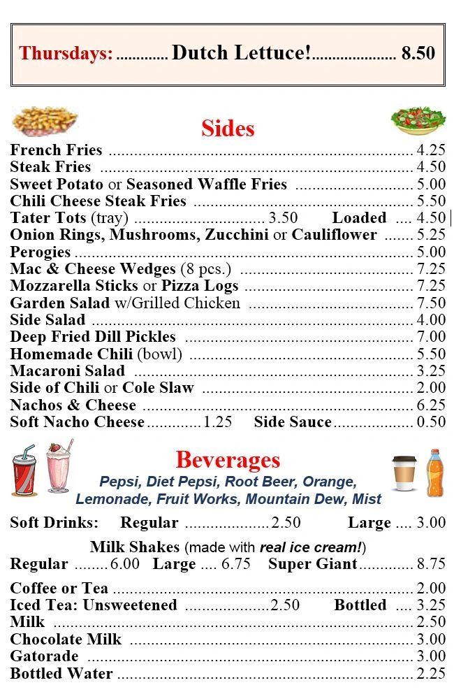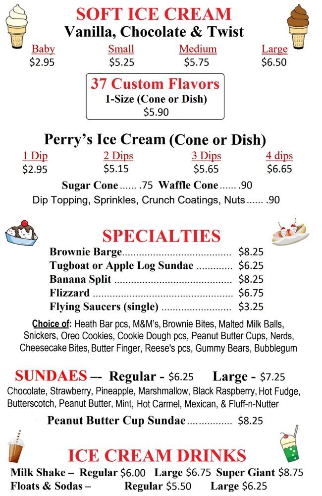 Ground steaks, hot dogs, fish. chicken, sandwiches, salads, sides, and the best ice cream around.